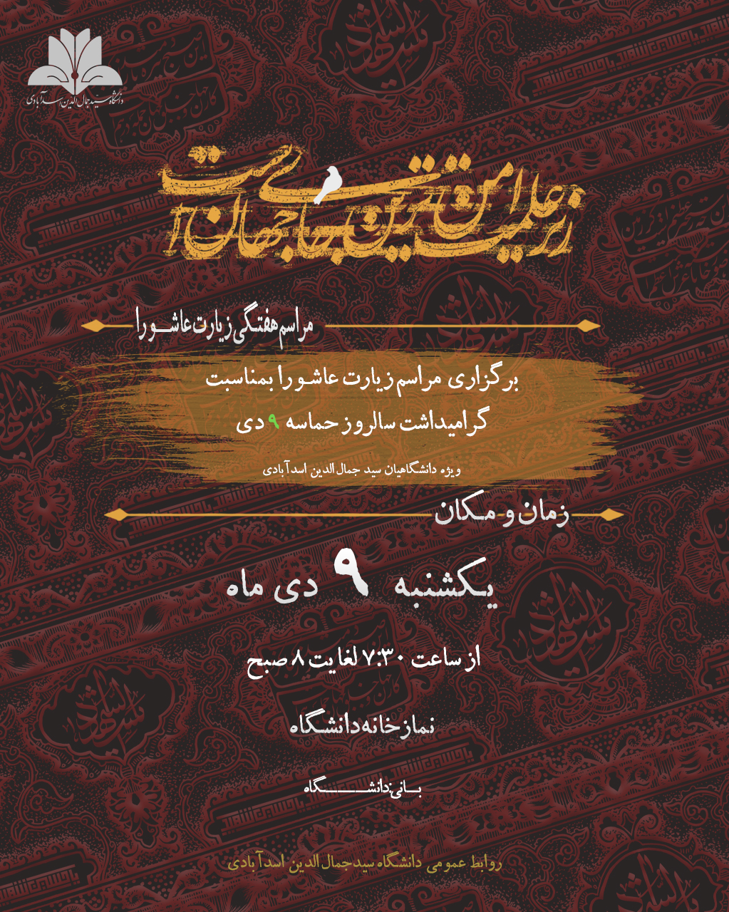 برگزاری مراسم زیارت عاشورا در یکشنبه های عاشورایی به مناسبت سالروز حماسه ۹ دی - دانشگاه سید جمال الدین اسدآبادی