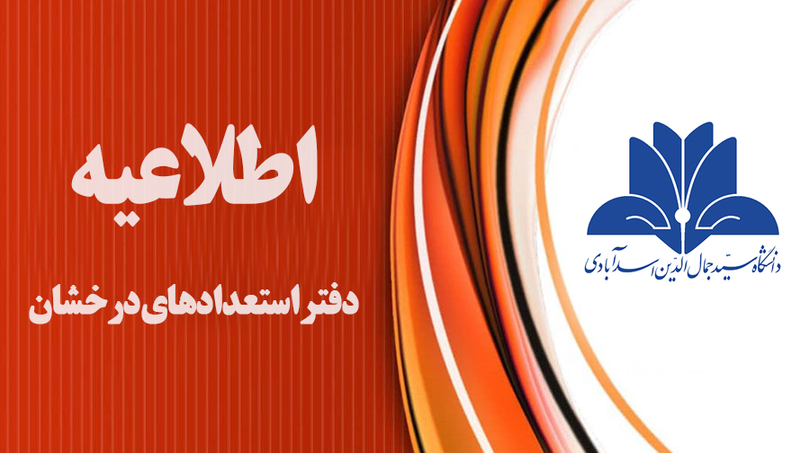 دانشگاه سیدجمال الدین اسدآبادی در راستای اجرای آیین نامه استعدادهای درخشان ۲۰ درصد برتر دانشجویان دوره کارشناسی پیوسته برای پذیرش بدون آزمون دوره کارشناسی ارشد مطابق با ابلاغیه شماره 2/307862 مورخ 17/10/1401 وزارت علوم، تحقیقات و فناوری، اقدام به پذیرش دانشجو با شرایط ذیل از طریق استعدادهای درخشان در دوره کارشناسی ارشد  رشته‌های آب و هوا شناسی گرایش تغییر اقلیم  و شیمی معدنی از داخل دانشگاه و سایر دانشگاه های کشور برای سال تحصیلی 1۴۰4-۱۴۰5 می نماید: