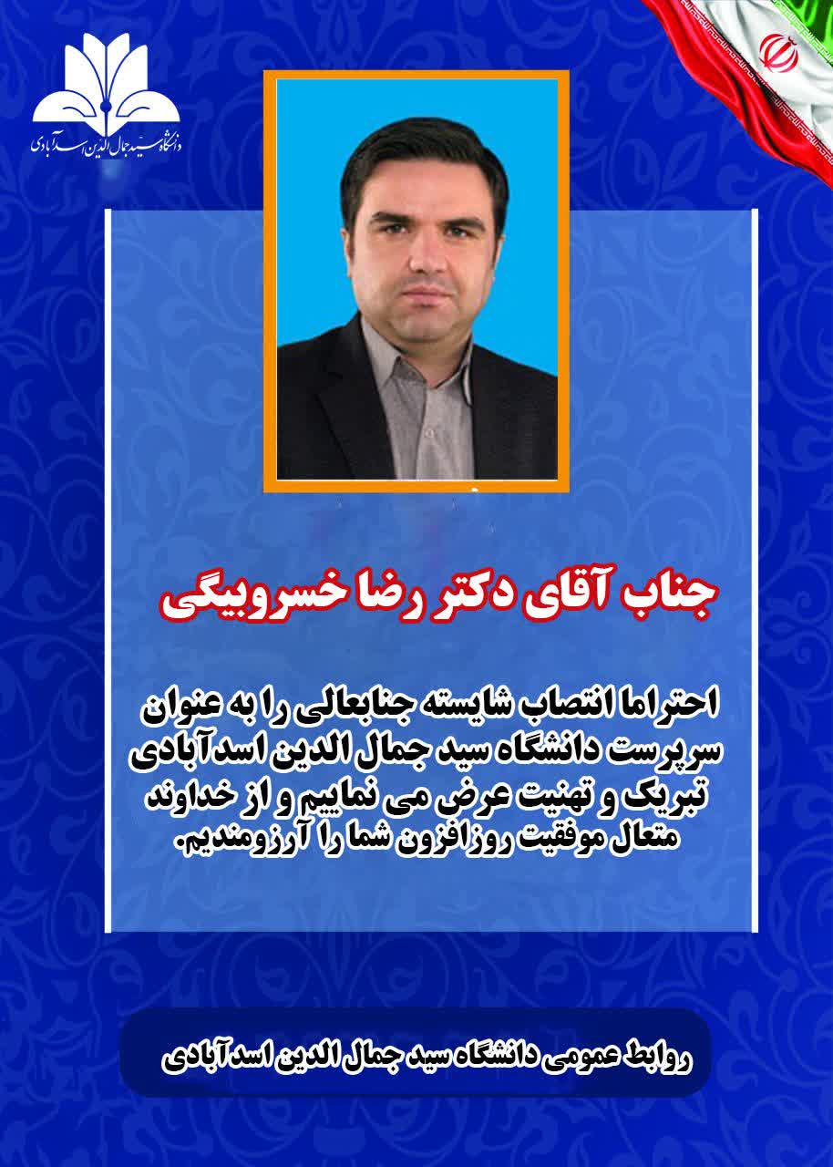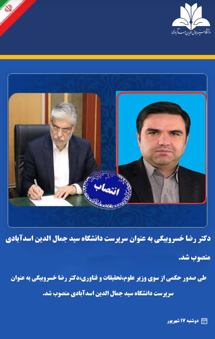 وزیر علوم، تحقیقات و فناوری با صدور حکمی، دکتر «رضا خسروبیگی» را به عنوان «سرپرست دانشگاه سیدجمالالدین اسدآبادی» منصوب کرد.