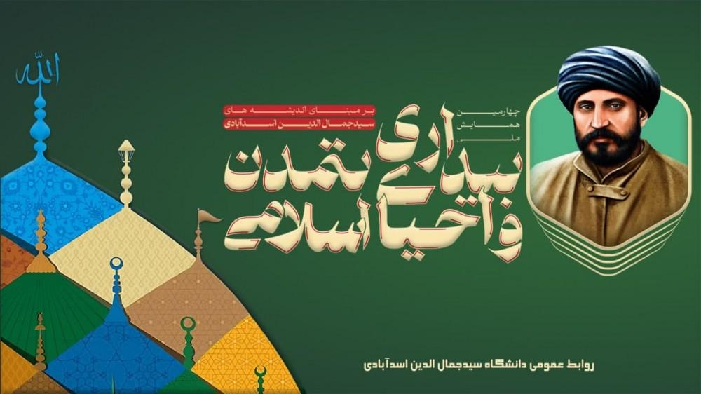چهارمین همایش ملی بیداری و احیای تمدن اسلامی بر مبنای اندیشه های سیدجمال الدین اسدآبادی با همکاری دانشگاه های بزرگ و انجمن های علمی کشور و با مجوز پایگاه استنادی پایگاه اسلام (ISC) برگزار گردید. این همایش. این همایش در دو بخش انجام شد. بخش نخست، با حضور شخصیت های علمی در سالن جلسات شهید سلیمانی دانشگاه سیدجمال الدین اسدآبادی برگزار گردید. در این بخش، آقای دکتر مهدی ابوطالبی معاون موسسه آموزشی و پژوهشی امام خمینی(ره) مقاله خود با موضوع، «اندیشه تمدنی سیدجمالالدین اسدآبادی؛ ظرفیت ها و محدودیتها» را ارایه دادند. سپس دکتر محسن الویری استاد دانشگاه باقرالعلوم مقاله خود با موضوع «مفهوم تمدناندیشی سیدجمالالدین اسدآبادی و فرایند چهره بستن آن» را ارایه نمودند. سپس آقای دکتر حمید پارسا نیا عضو هیأت علمی دانشگاه تهران و عضو شورای عالی انقلاب فرهنگی در خصوص «اهمیت وحدت در نگاه سیدجمال الدین اسدآبادی» به ایراد سخنرانی پرداختند. افزون بر این، آقای دکتر امیرحسین حاتمی دانشیار دانشگاه بین المللی قزوین، مقاله خود با عنوان « سيدجمال الدین اسدآبادی و انديشه اصلاح » را ارایه دادند. شایان ذکر است در این بخش پیام حضرت آیت الله دکتر علی عباسی رجامعة المصطفي (ص) العالميه و عضو مجلس خبرگان رهبری توسط آقای دکتر حافظ مهدنژاد دبیر علمی این همایش قرائت گردید.