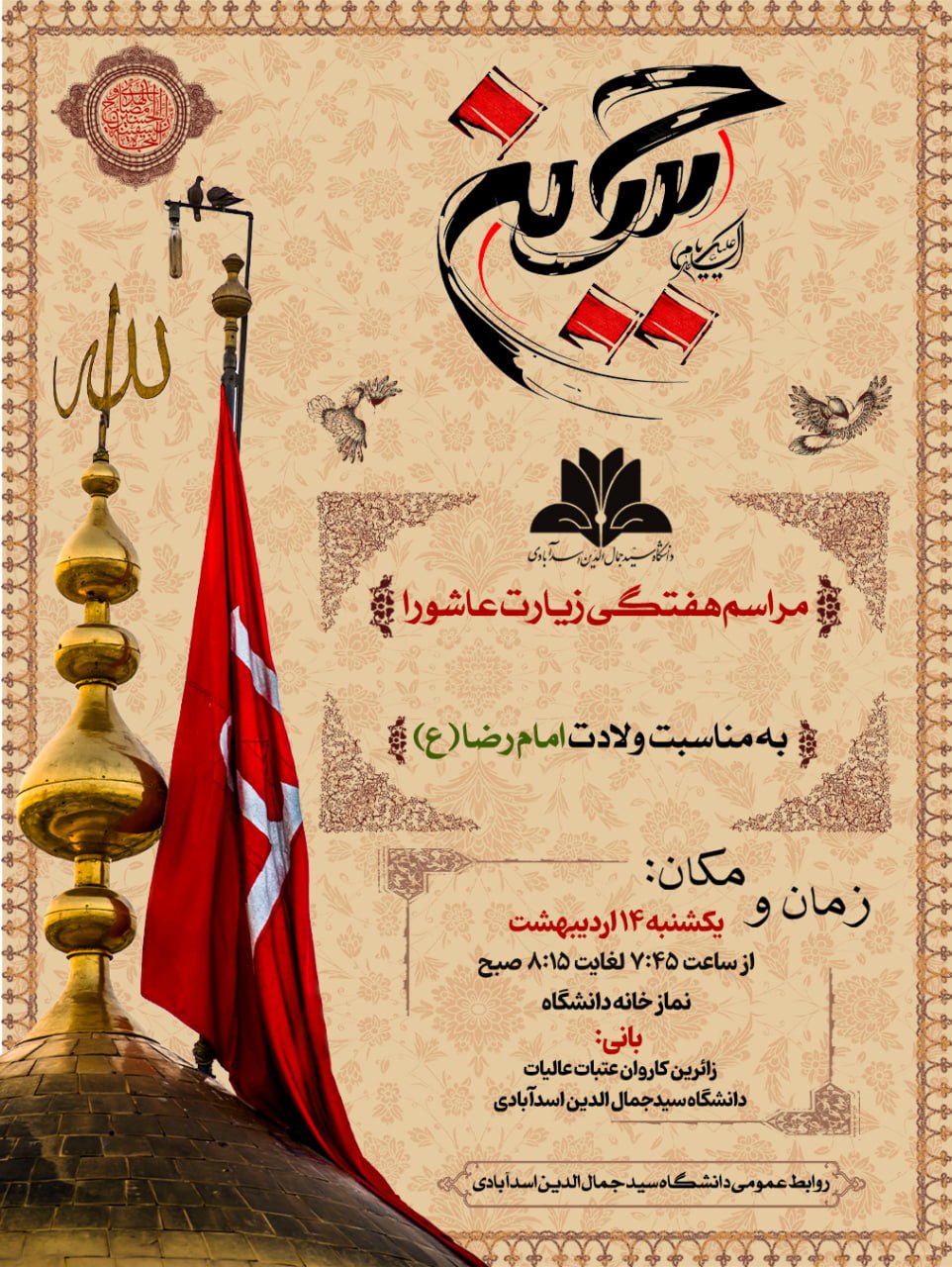 برگزاری مراسم هفتگی زیارت عاشورا به مناسبت ولادت امام رضا (ع) - دانشگاه سید جمال الدین اسدآبادی