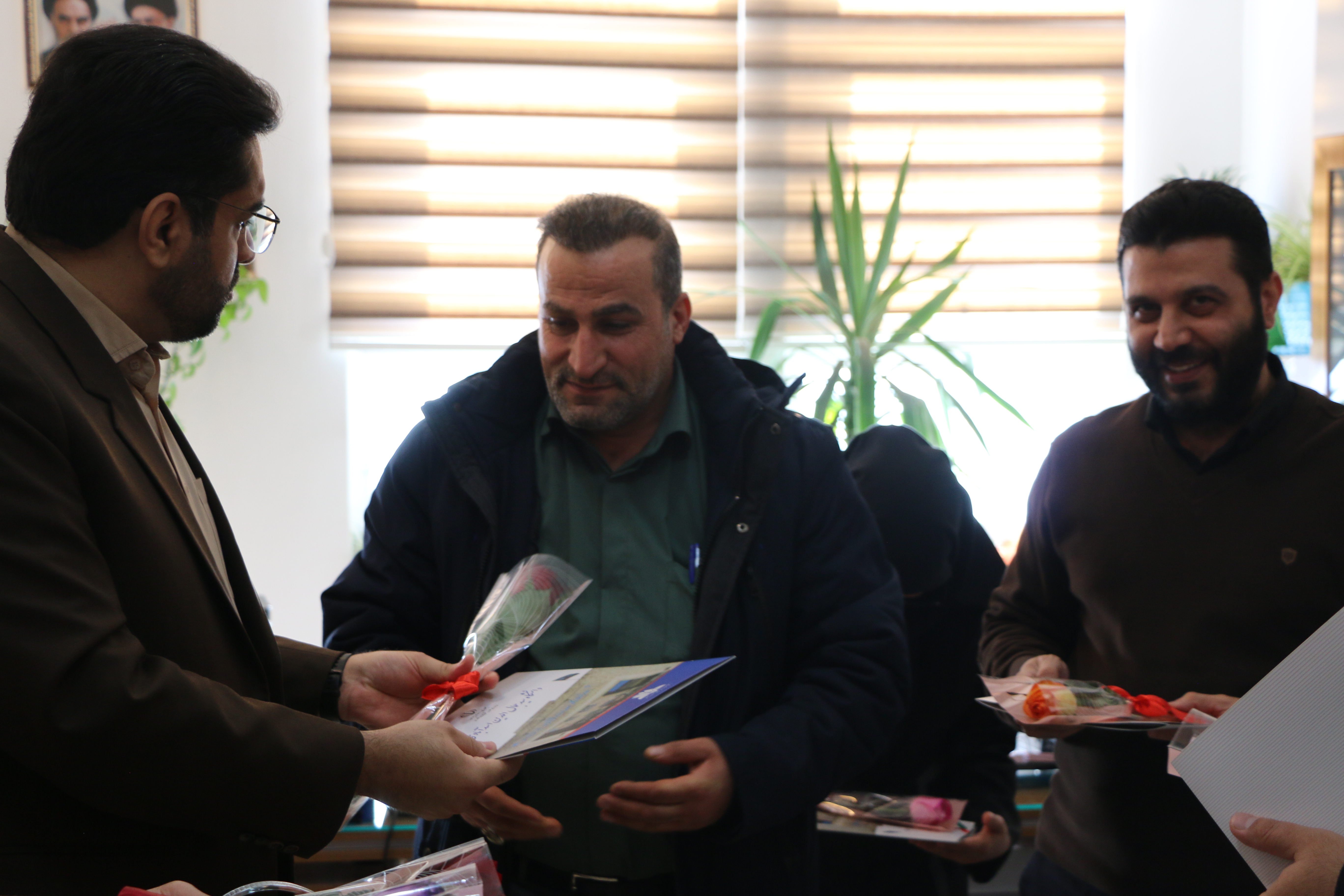 دکتر خزل پور و اعضای هیأت رئیسه، با اهدای شاخه گل و لوح سپاس به آنها تبریک گفتند و برای آنها، آرزوی موفقیت و سربلندی نمودند و از خدمات بی شائبه و تلاش های صادقانه و مجدانه آنها در پیشبرد اهداف عالیه دانشگاه تقدیر و تشکر به عمل آوردند.