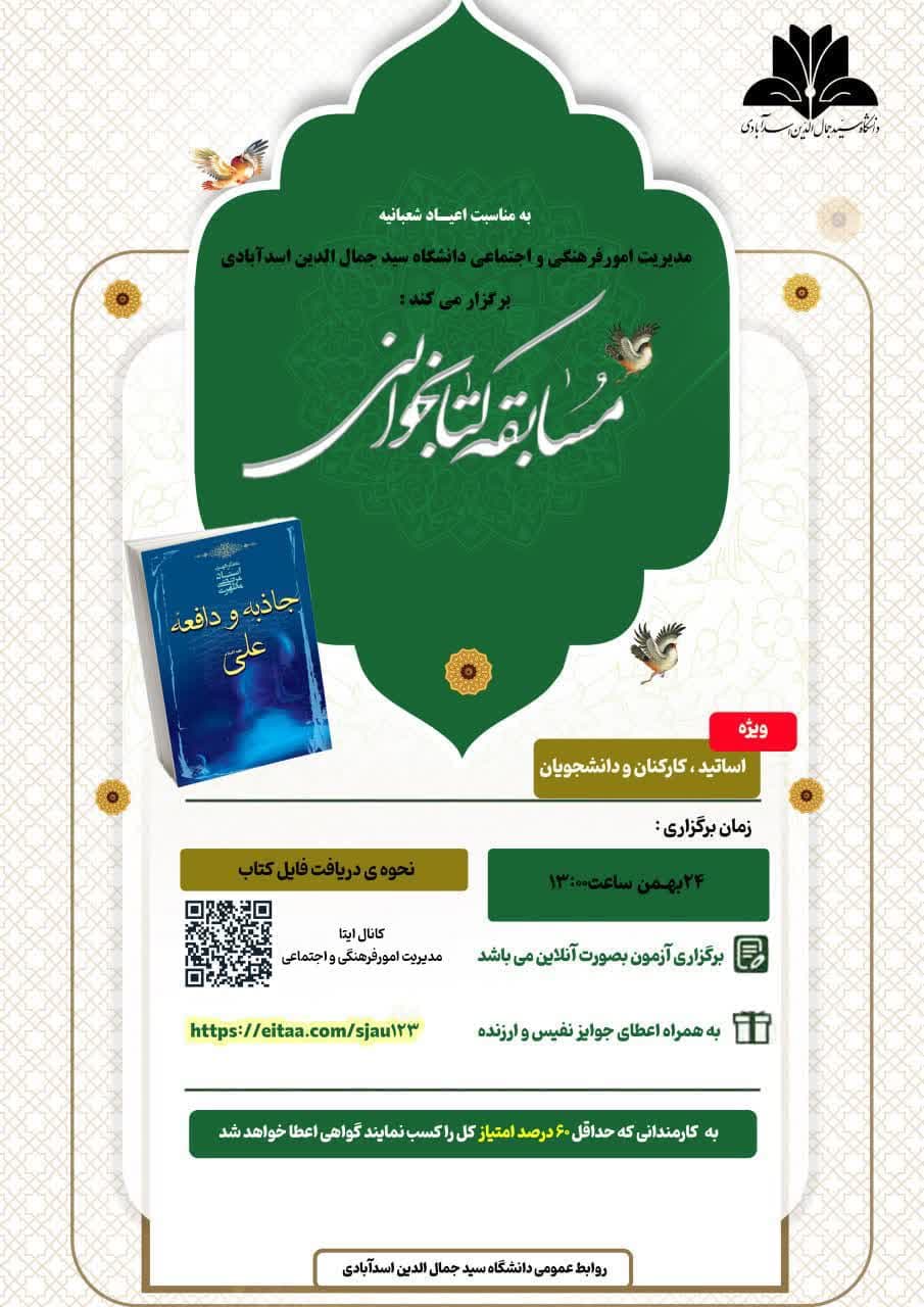 مدیریت امور فرهنگی و اجتماعی دانشگاه سید جمال الدین اسدآبادی، به مناسبت اعیاد شعبانیه برگزار مینماید:
