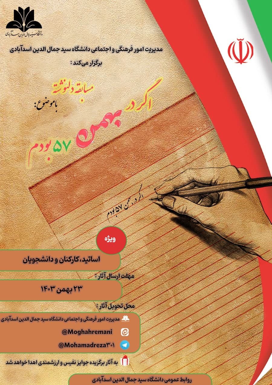 مدیریت امور فرهنگی و اجتماعی دانشگاه سید جمال الدین اسدآبادی، برگزار می کند: