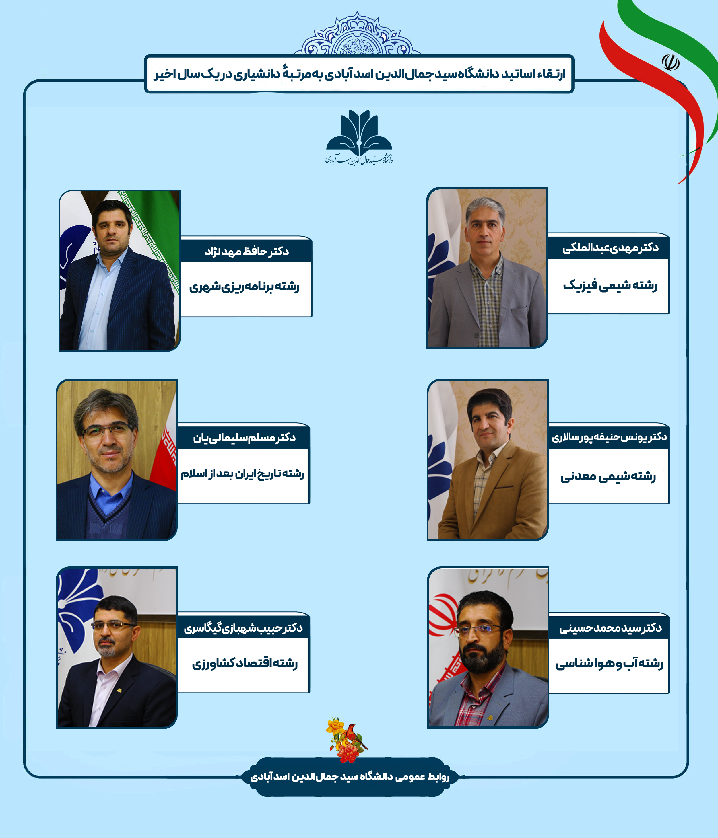 ارتقاء بی سابقه اعضای هیأت علمی دانشگاه سیدجمال الدین اسدآبادی به مرتبه دانشیاری در یک سال اخیر - دانشگاه سید جمال الدین اسدآبادی