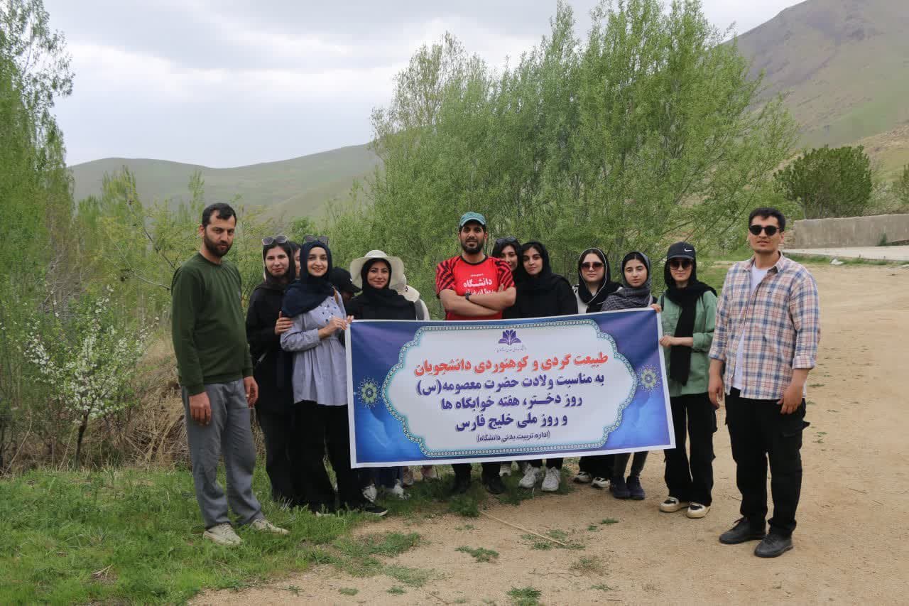 این اردو روز جمعه مورخ پنجم اردیبهشت ماه سال ۱۴۰۴ در آستانه ولادت حضرت معصومه(س)، روز دختر و روز ملی خلیج همیشه فارس با سرپرستی آقای محمد مهدی مولوی رئیس اداره تربیت بدنی دانشگاه سید جمالالدین اسدآبادی برگزار گردید.