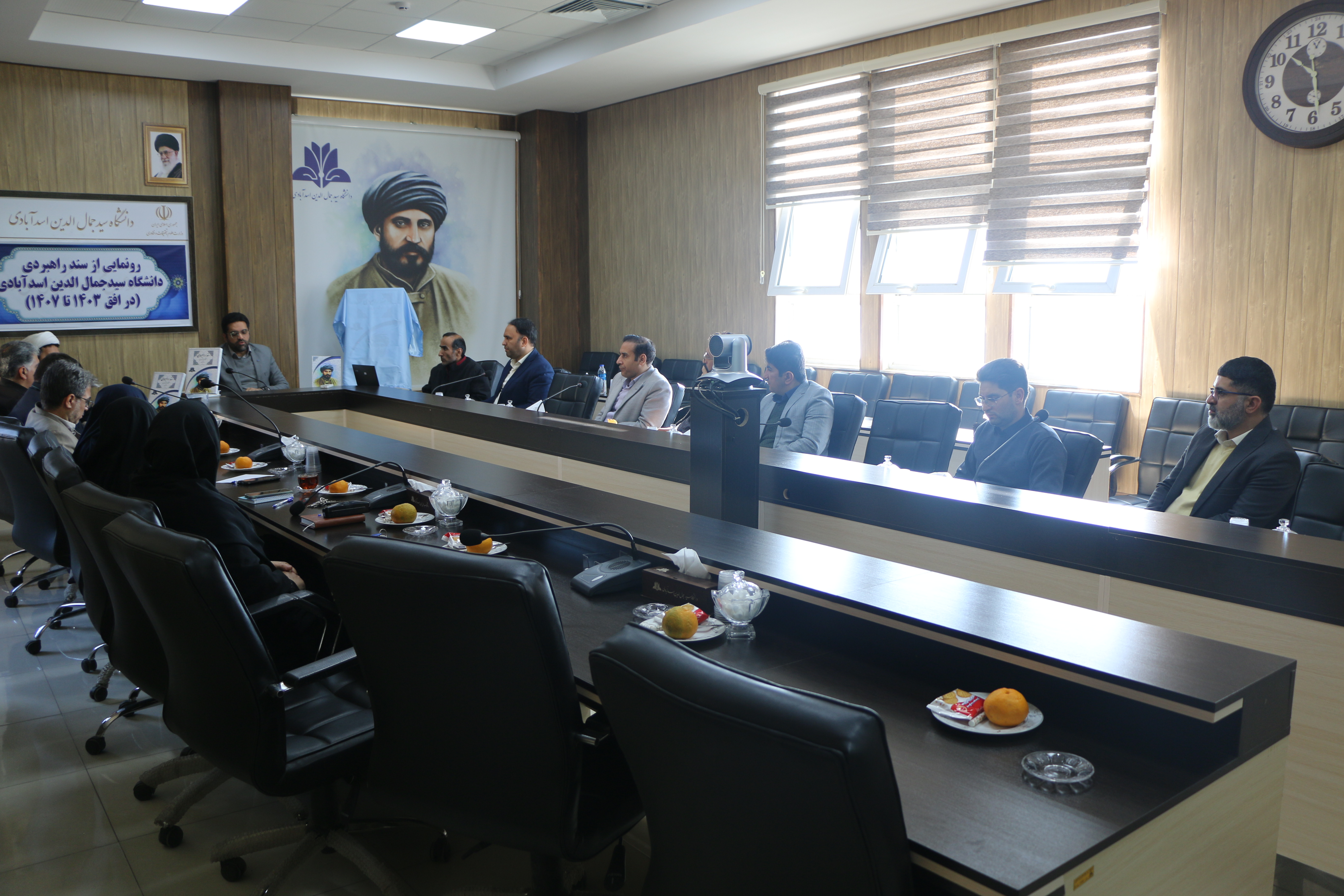 در پایان این جلسه، از سند راهبردی دانشگاه سیدجمال الدین اسدآبادی در افق ۱۴۰۳ تا ۱۴۰۷ ، رونمایی شد.