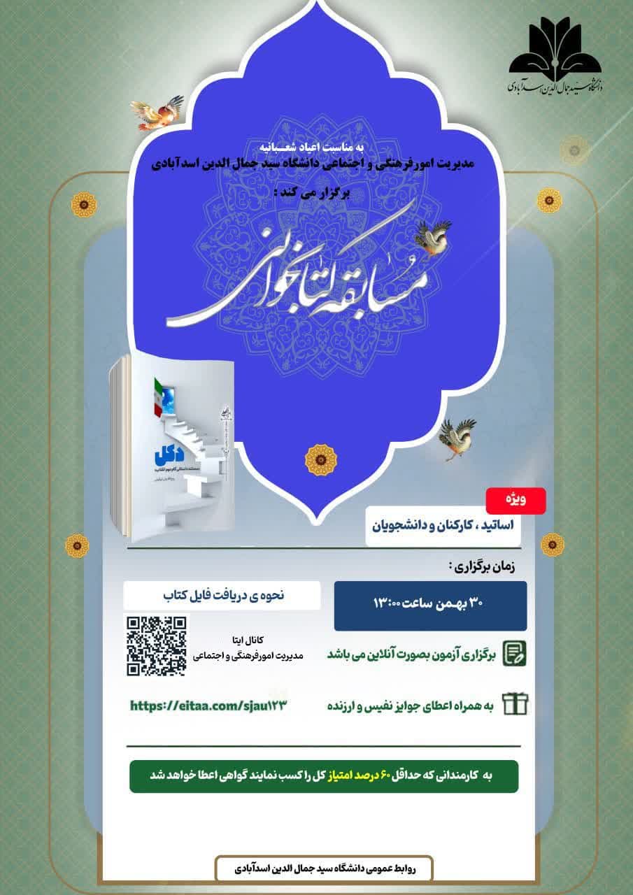 مدیریت امور فرهنگی و اجتماعی دانشگاه سید جمال الدین اسدآبادی، به مناسبت اعیاد شعبانیه برگزار مینماید: