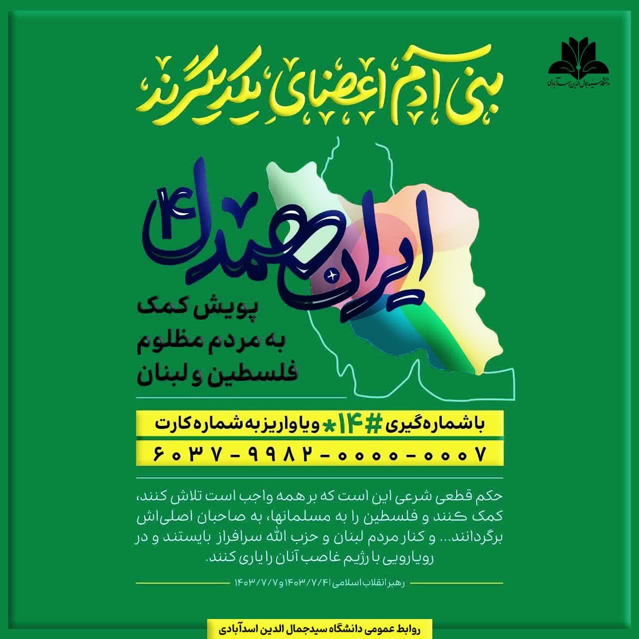 پویش «ایران همدل» برای کمک به مردم فلسطین و لبنان - دانشگاه سید جمال الدین اسدآبادی