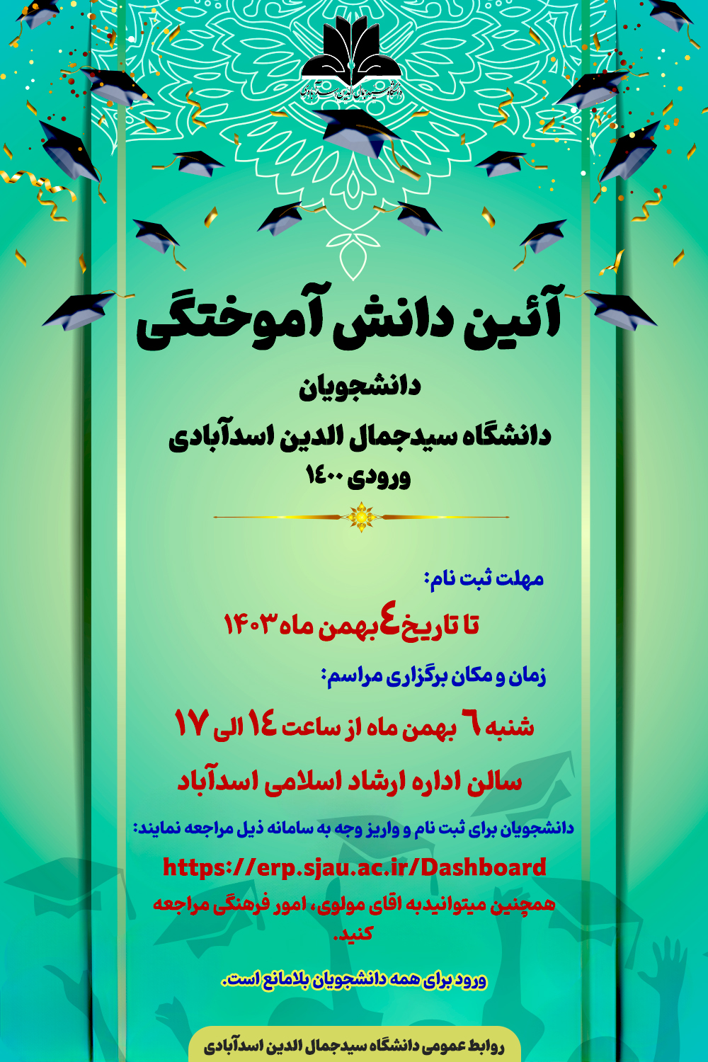 جشن فارغ التحصیلی دانشجویان ورودی 1400 دانشگاه سید جمال الدین اسدآبادی - دانشگاه سید جمال الدین اسدآبادی