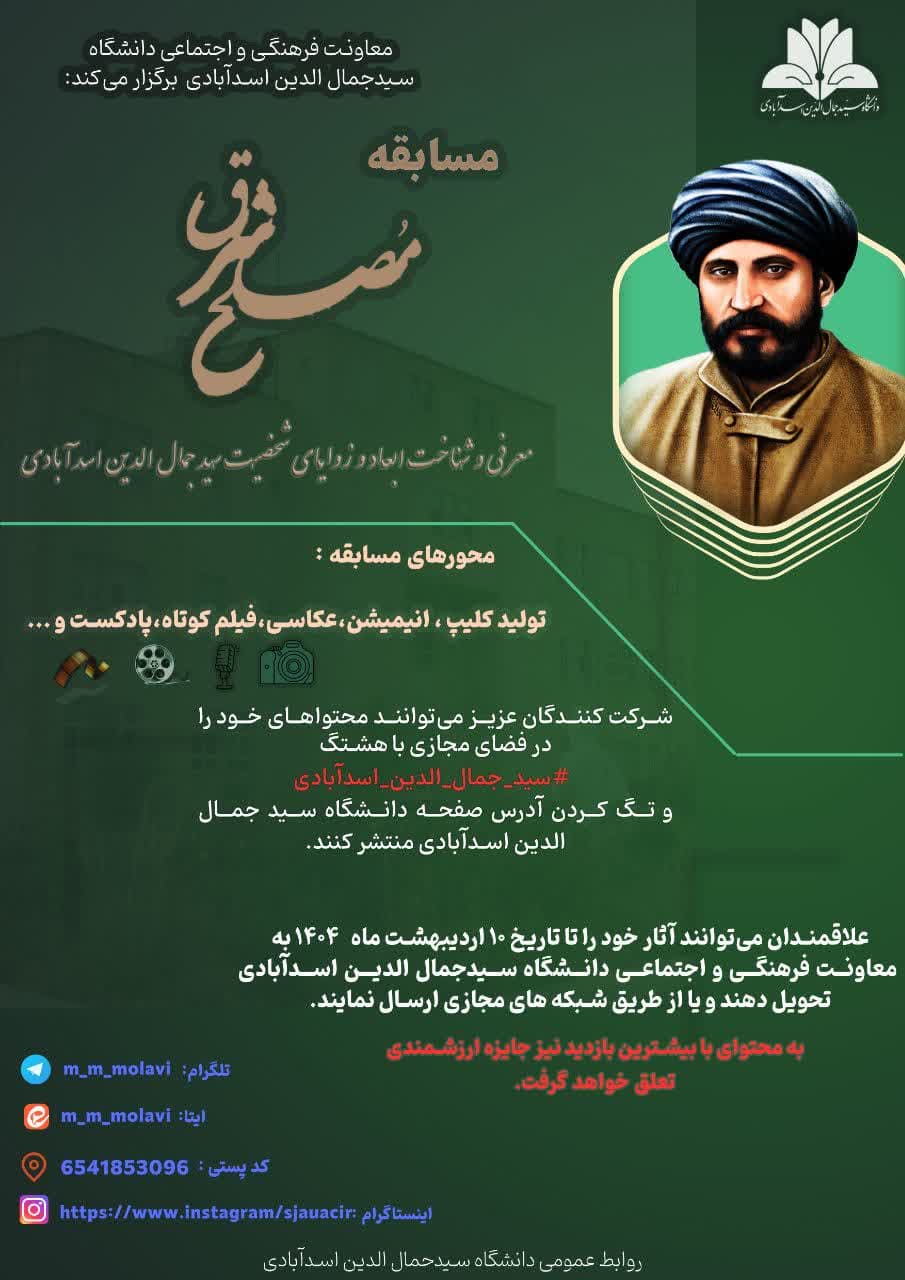 مسابقه مصلح شرق؛ معرفی و شناخت ابعاد و زوایای شخصیت سیدجمال الدین اسدآبادی - دانشگاه سید جمال الدین اسدآبادی