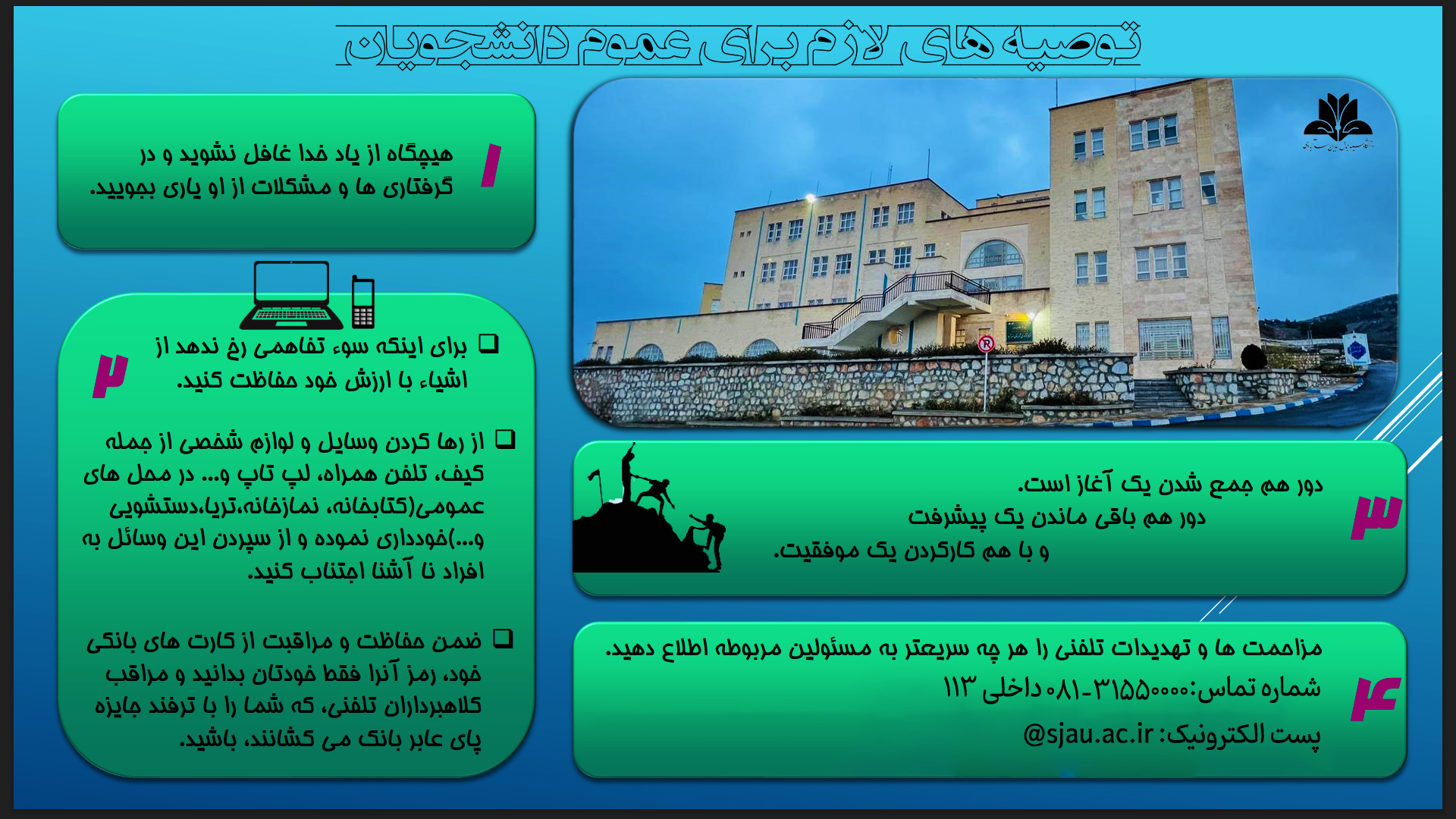 توصیه های لازم برای عموم دانشجویان و دانشجویان خوابگاهی